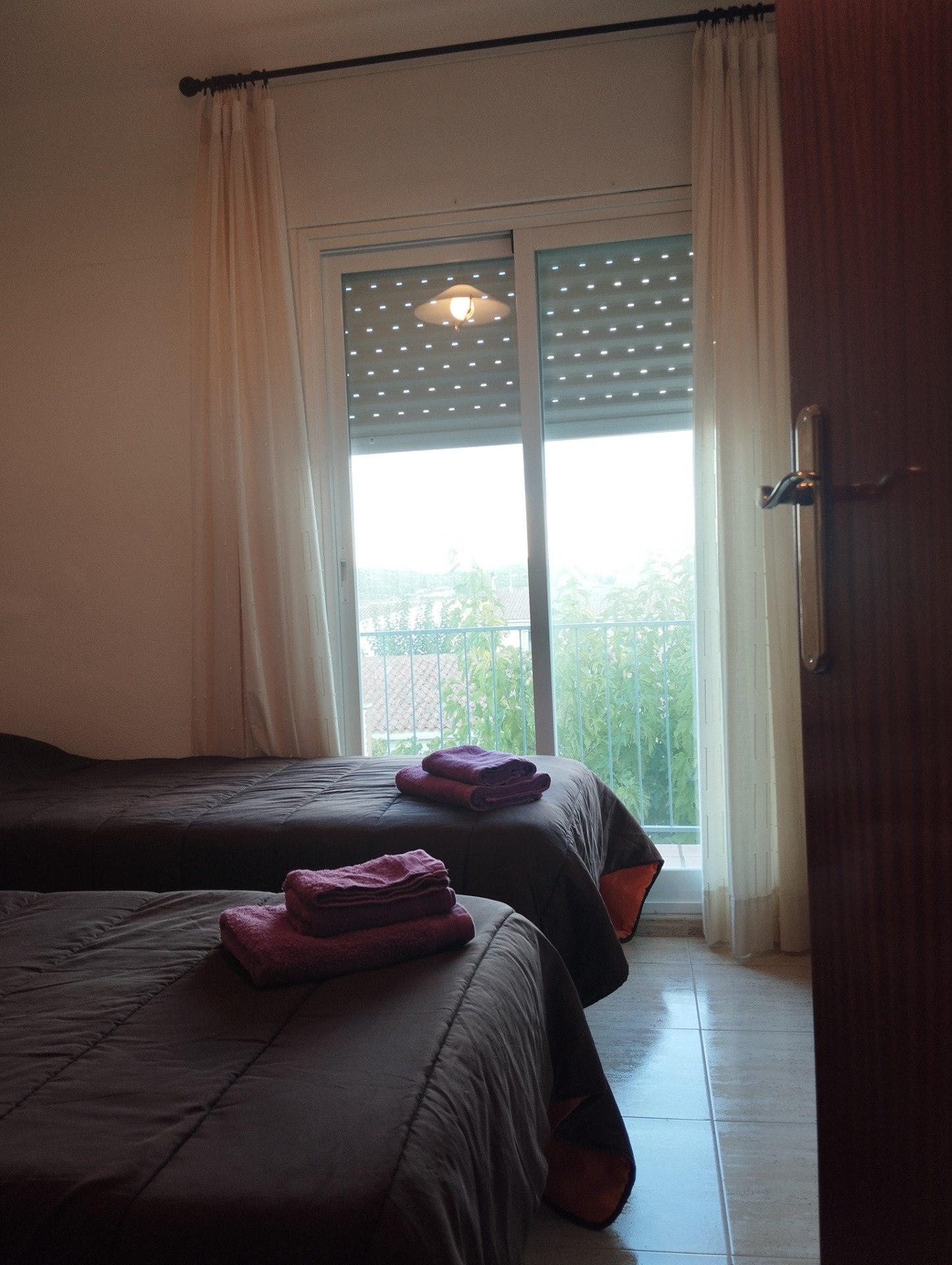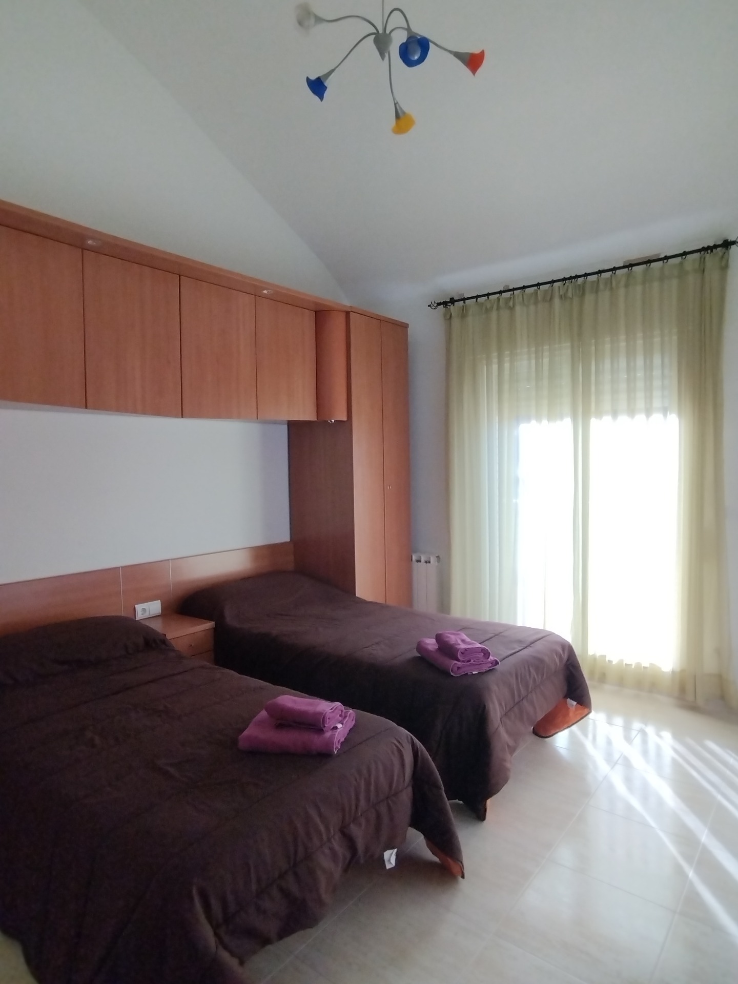 su distribución es de 1 habitación de matrimonio y 3 habitaciones con dos camas de 90.